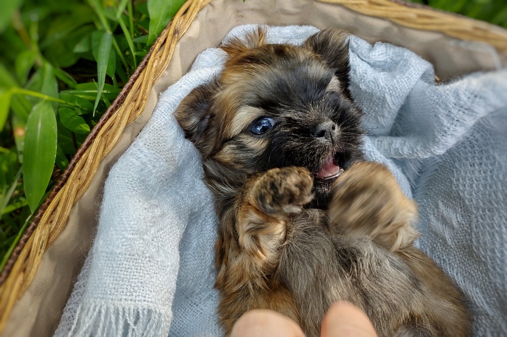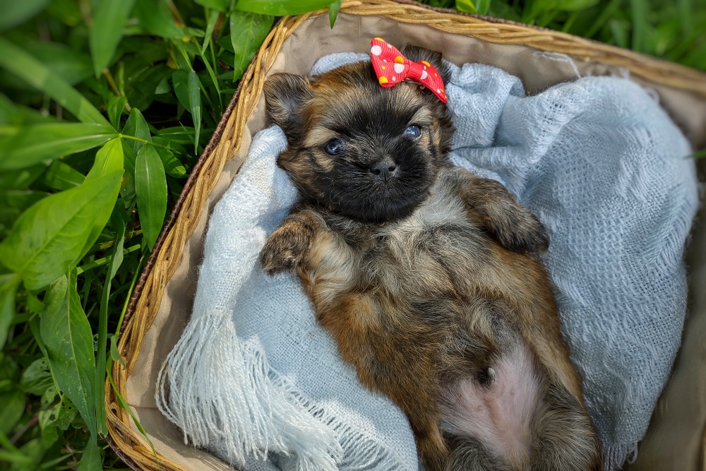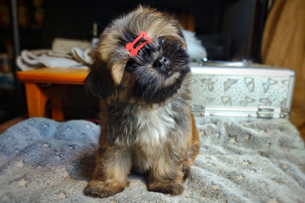 Imperial Korean Malshis have beautiful long hair that is thick, lush, and silky. To maintain their soft, luxurious appearance and prevent tangles, daily brushing with a pin brush and comb is essential. This keeps their coats clean, comfortable, and in excellent condition whether kept long and luxurious or trimmed short and cute. Bathing every few weeks helps keep them stay clean without stripping the coat’s natural oils. Their expressive babydoll faces also need daily attention. Eye boogers should be gently combed out using a fine-tooth comb, then wiped clean with a dry cotton round to keep the area clean and reduce staining. When grooming is done regularly and kept positive, it becomes a great time to bond. These pups enjoy the attention, and a consistent grooming routine helps build trust and connection.