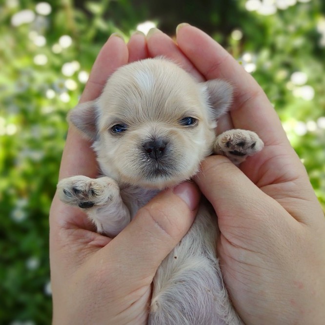 The Imperial Korean Malshi dog is an extremely rare and exquisite breed made by combining two exceptionally charming and sought-after lines. The Korean Maltese, which originates from Korea, is known for its babydoll face with a shorter nose, wideset eyes, rounder forehead, smaller size, and reduced tear staining. The Imperial Shih Tzu, a smaller variation of the standard Shih Tzu, is adored for its forever-puppy look featuring a babydoll face, expressive eyes, and a petite frame. Often referred to as teacup, these Shih Tzus remain compact and irresistibly cute throughout their lives. Together, the Korean Maltese and Imperial Shih Tzu create the Imperial Korean Malshi dog, a rare and unique companion with breathtaking looks and a sweet, endearing personality.