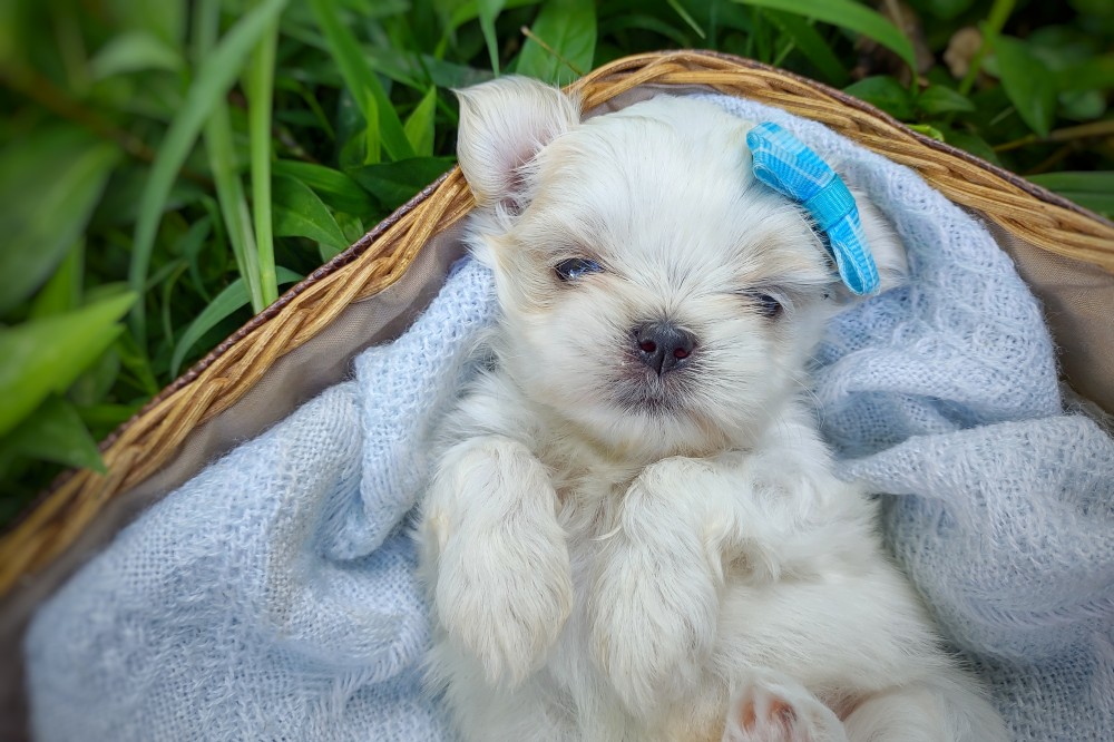 We are very intentional in how we rear our Malshi puppies, only using scientifically-supported rearing approaches. For example, our Malshi puppies are gently handled from a young age by our children of all ages, from small children to young adult children. Family-rearing of this type means our puppies are regularly exposed to the hustle and bustle of busy family life. Starting at just three days old, our puppies begin a carefully designed enrichment program that goes far beyond the basics. While we incorporate Early Neurological Stimulation (ENS) and Early Scent Introduction (ESI), we also utilize our own thoughtfully developed puppy stimulation protocol. This exclusive approach includes a wide range of early sensory, tactile, and environmental exposures to help nurture confident, adaptable puppies. These experiences lay the foundation for a variety of real-world situations. Because grooming is an important part of life for Malshi puppies, we integrate desensitization to brushes, grooming tools, and gentle handling into our early stimulation work. This not only prepares our puppies for routine grooming care but also contributes to a broader sense of calm and responsiveness in unfamiliar situations. The result is a well-rounded, resilient puppy who meets the world with trust and curiosity. In addition, we raise all our Malshi puppies with a commitment to holistic puppy healthcare. This approach includes a newborn puppy chiropractic adjustment, thorough holistic veterinary exam, oral immunizations that support gentle and natural immune development, and a whole food-based diet free from fillers, chemicals, and synthetic additives. Holistic puppy healthcare naturally reduces toxic exposure and, in turn, supports strong, balanced growth and development. In other words, it works with each puppy’s innate healing systems rather than against them. We also raise our Malshi puppies with some foundational training in several important areas. Most of our puppies are potty-trained to our environment by the time they go to their new homes. This means their new families simply need to support and reinforce the training already in place, making the housebreaking process much smoother and faster. Most of our puppies are also crate-acclimated, as we use crates as their designated sleeping space within their puppy playpens. This helps them naturally view the crate as a safe and comfortable place, not as a place to go potty. In addition, we begin basic command training with each litter. While they won’t have fully mastered these commands before going home, they will have been introduced to key cues like “Sit,” “Down,” “Stay,” and “Come.” This early start gives their new families a helpful foundation to build upon. For more information, please visit Puppy-Rearing Methodswe use with our Korean Malshi puppies for sale.