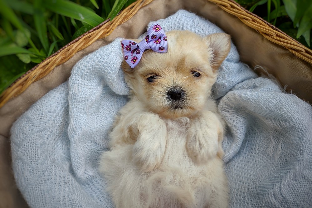 Each of our Korean Malshi puppies for sale includes a lot of high value benefits. For example, we include a Health Guarantee against serious, life-threatening genetic diseases with each puppy. As mentioned early, our puppies receive a holistic vet exam as well. Also included with each puppy is a low eCOI (estimated litter Coefficient of Inbreeding), genetically-screened parents, and 30 days of free Trupanion health insurance. The Elite Breeder Personality Testing and Matching protocol we mentioned earlier means that our puppies come tested and matched appropriately to your family. This benefit is very valuable as you receive a puppy to match you and your needs rather than just a random puppy. With each puppy we sell, we provide a complementary bottle of New Puppy Transtioning Bach Flower remedy to help support the puppy’s emotions and reduce the puppy’s stress as they transition to your home. Likewise, an optional complementary Bach Flower For Pets Consultation. Additionally, to support preparing and training your puppy, it comes with a 25% discount code for a lifetime subscription to the Baxter & Bella Online Puppy School. Each of our Korean Malshi puppies for sale goes home with a thoughtfully assembled take-home bag that includes things like a leash, harness, shirt, sweater or dress, limited registration paperwork, littermate-scented blanket, combs, toys, etc. Finally, we provide a very detailed puppy owner manual to each buyer before they bring their new puppy home. Designed to prepare you for your new puppy, this manual will also help you navigate the waters when puppy pick-up day arrives and you bring you puppy home. The manual covers a wide range of topics, from the planning and preparation stage to holistic healthcare education, to feeding your puppy, to proper socialization and training for your puppy. Each puppy we sell comes with Lifetime Support from us. For more information, please visit What's Includedwith our Malshi puppies for sale.