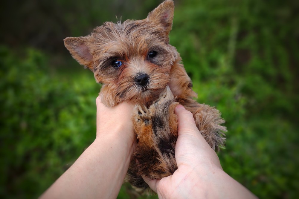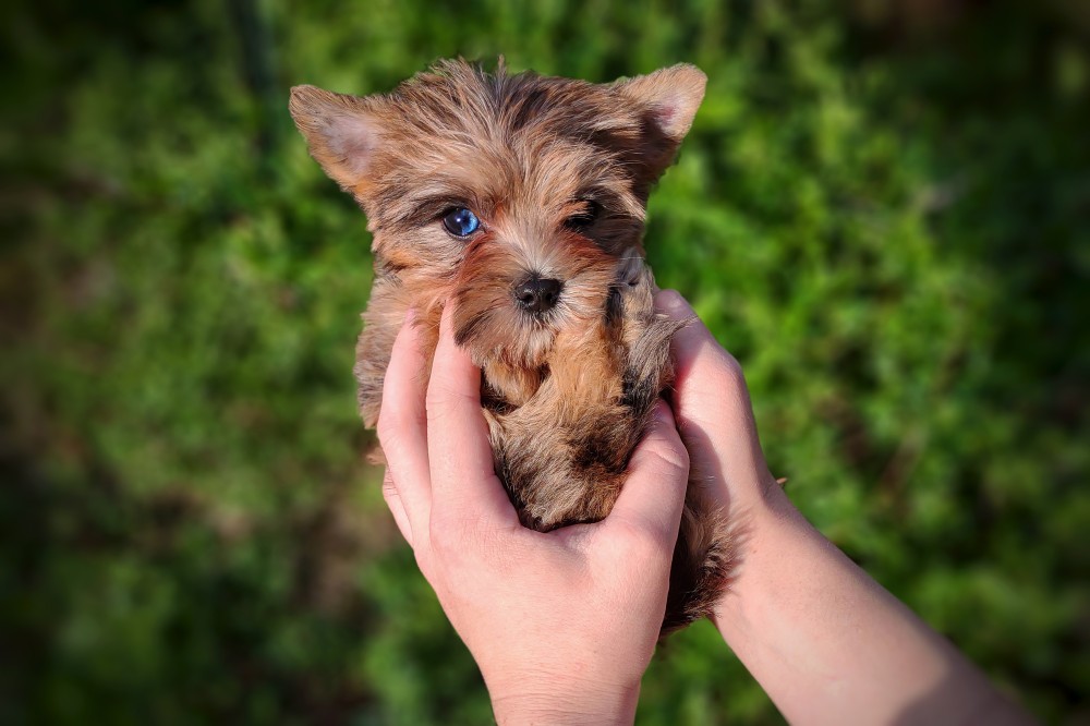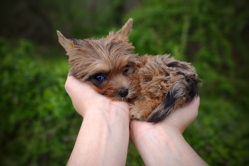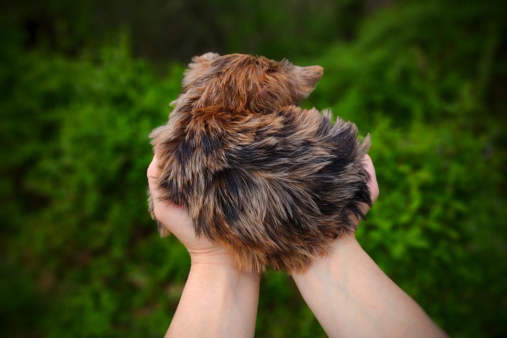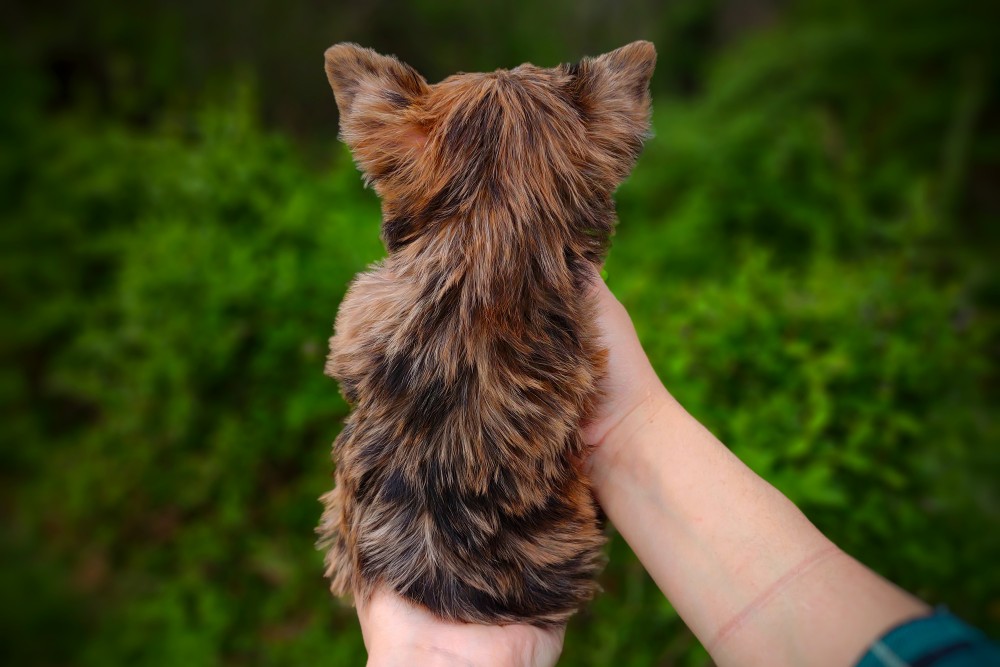 GENERAL INFORMATION: Breed: Russian Yorkshire Terrier Gender: Female Estimated Adult Weight: 6lbs Estimated Adult Height: 8" Date of Birth: 2/13/2025 Color: Brindle Sable Merle Personality Type: TBD