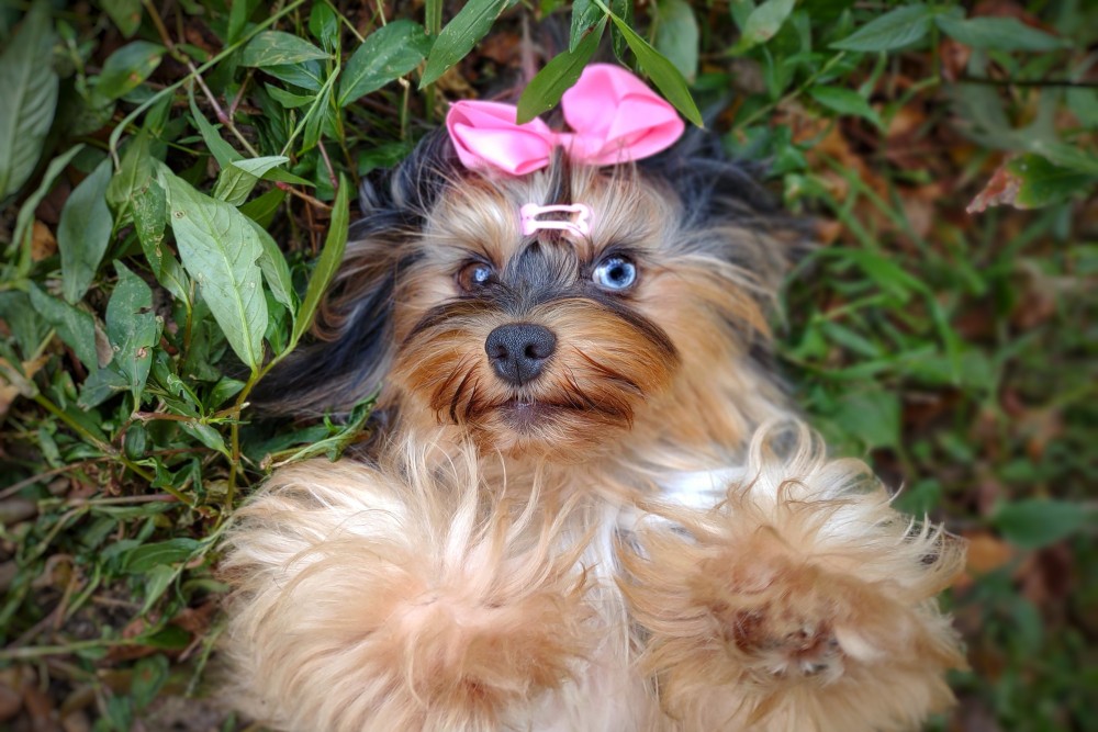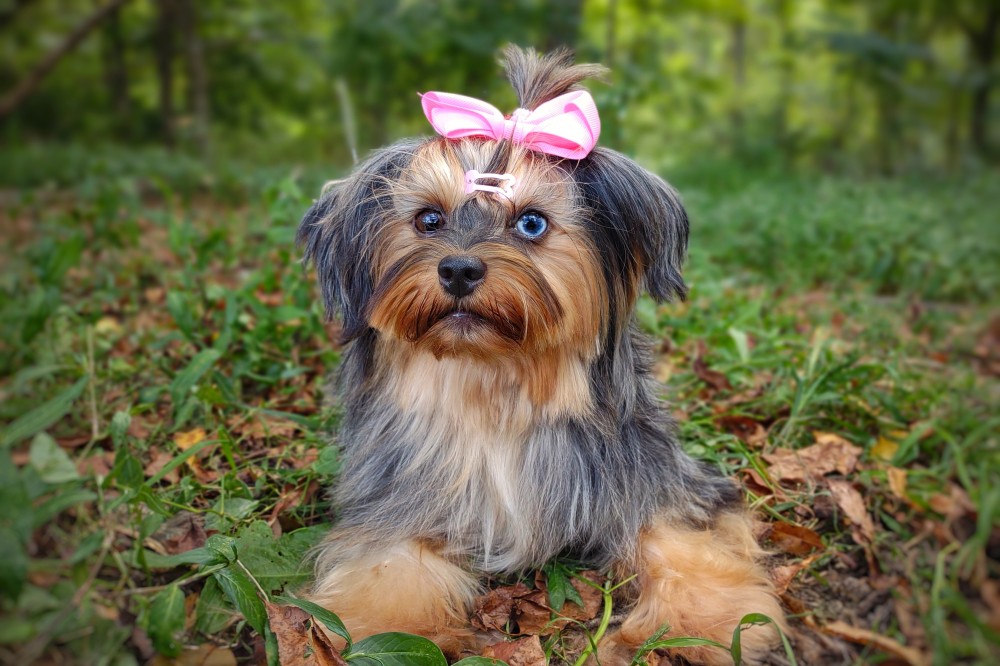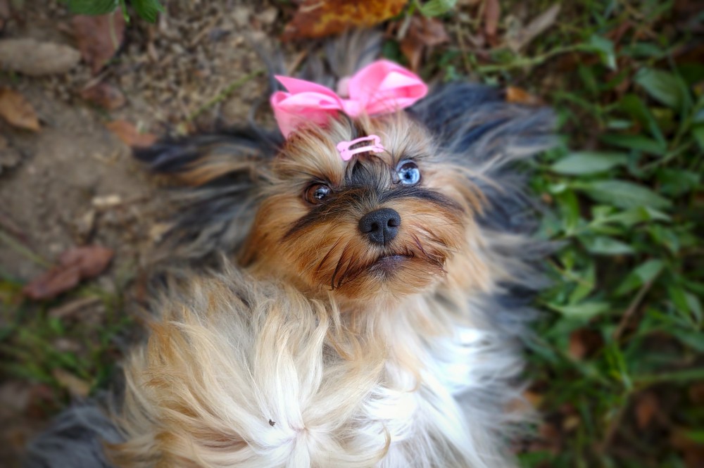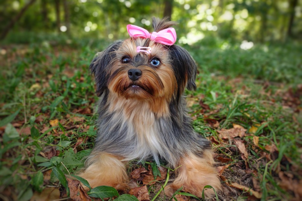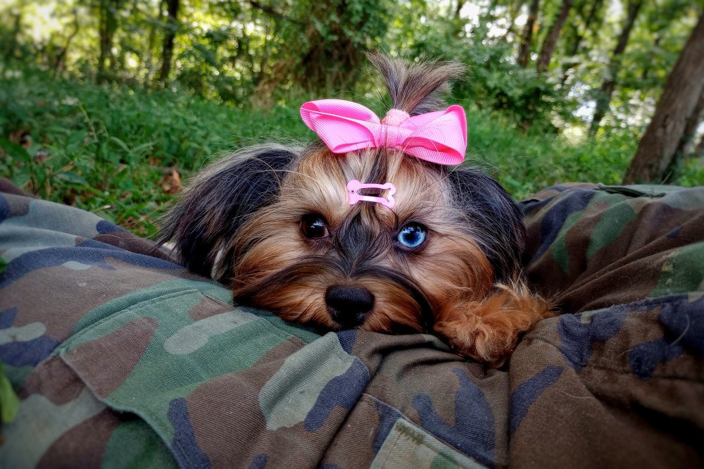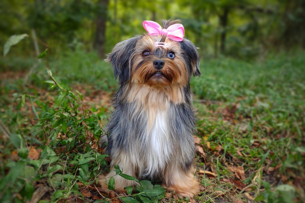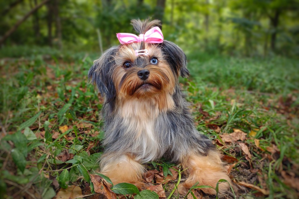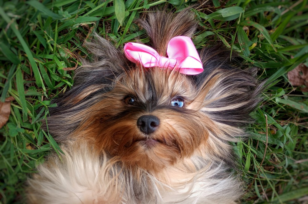GENERAL INFORMATION: Breed: Yorkshire Terrier Gender: Female Weight: 9lbs Height: 9" Date of Birth: 6/12/2021 Color: Tan Point Merle Personality Type: Sociable-Friendly with Gentle-Cooperative tendencies