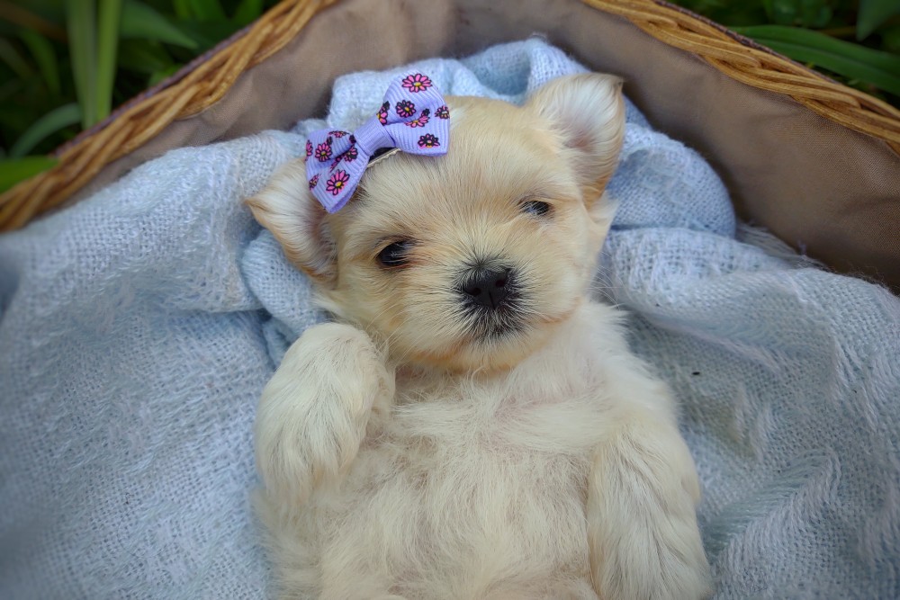 Stormfly is a teensy tiny Imperial Korean Malshi who is the smallest of her litter. She has a shiny light gold coat and the sweetest babydoll face with the tiniest nose and that delicate, royal look that’s just so perfect. Note: We will periodically update the Charting Weight above as the puppy grows. Please understand that we cannot guarantee any puppy's adult size.
