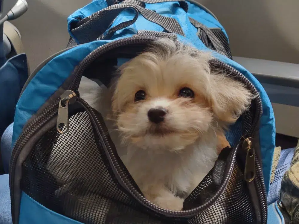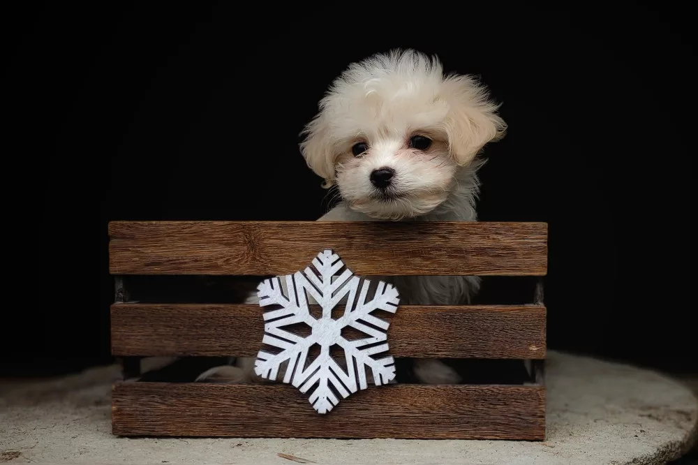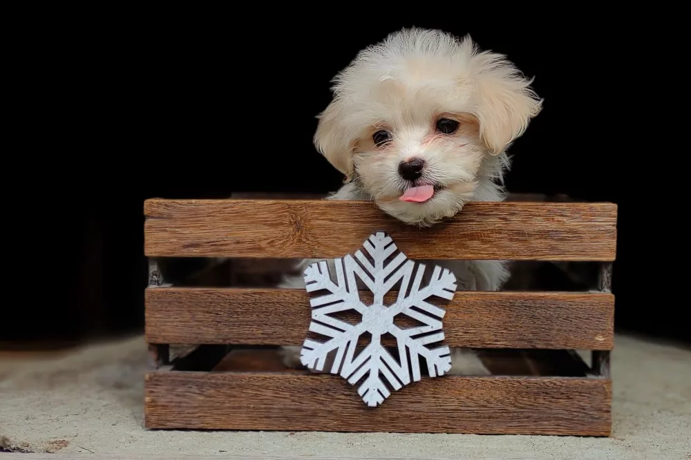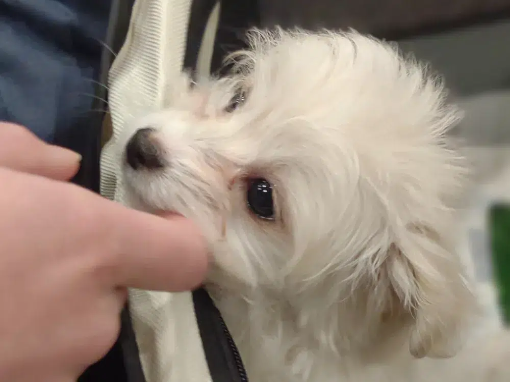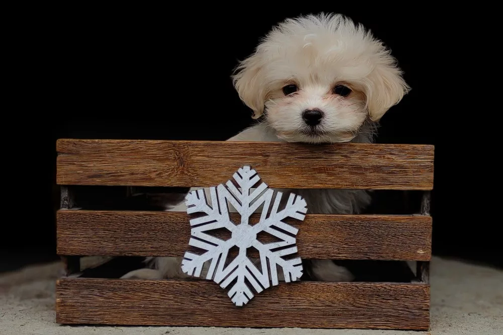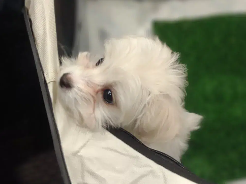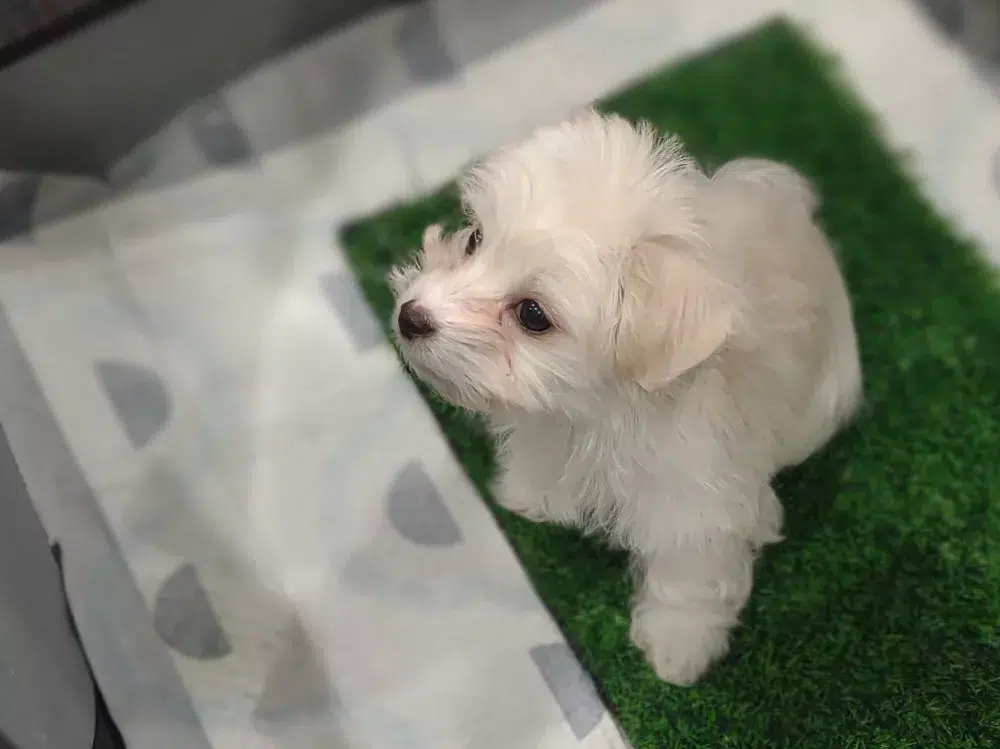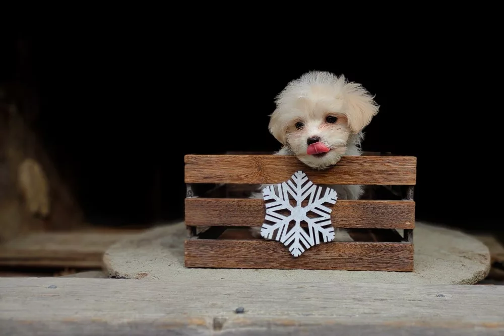 Taffy was the second-born of her litter and she was born at a healthy average-size for a newborn Havamalt puppy! She was happily nursing from her mama within 14 minutes of birth. She has been gaining weight steadily since birth, and is currently thriving! Taffy arrived looking like a solid white puppy, but it became evident fairly quickly that she is white and cream. Our best guess is she will stay white & cream as she matures. Because Mama is a Havanese, we can only make an educated guess. After all, Havamalts are like a box of chocolates! You never know what you are gonna get! Taffy has a lavender collar so you can easily pick her out in pictures and videos. Taffy's personality test revealed that she has a Gentle-Cooperative personality, which is exactly what we have guessed for a while now based on observing her with her litter mates and our family.